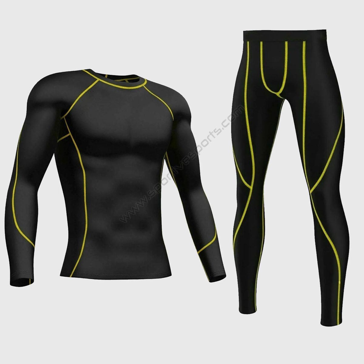 Sportivespor Men’s & Boy’s Set Yellow Thermolinx Compression Base Layer Shirt & Leggings