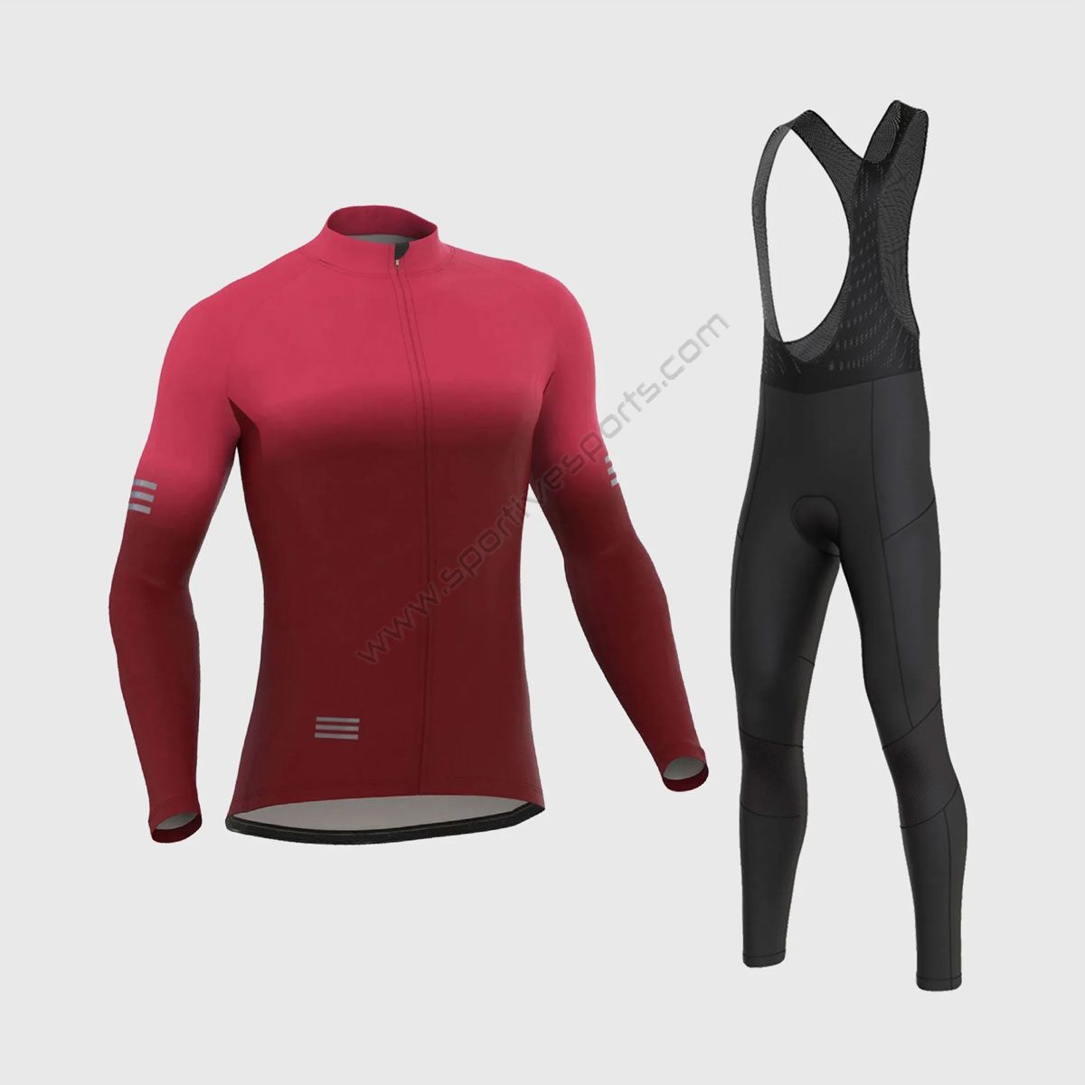 Sportivesports Men’s & Boy’s Set Duo Thermal Roubaix Long Sleeve Cycling Jersey & Bib Tights – Pink / Maroon